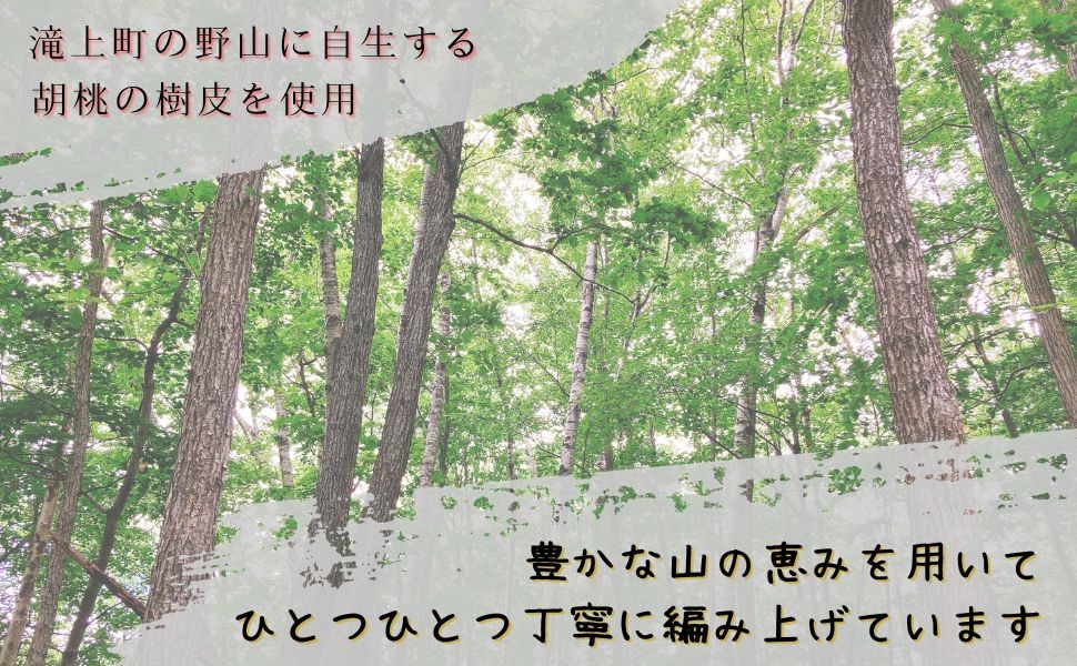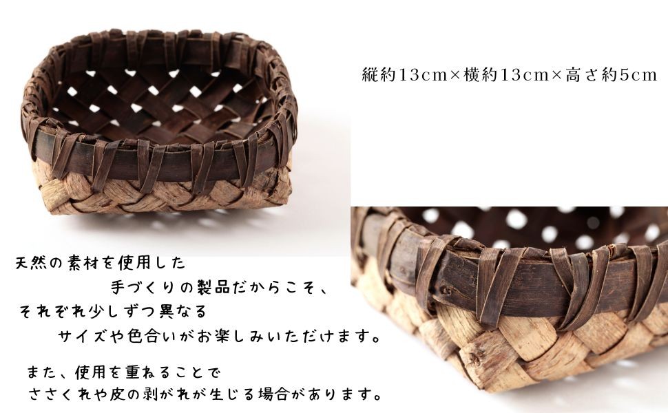 滝上産胡桃樹皮の小さな籠_北海道 天然木 クルミ 手づくり かご