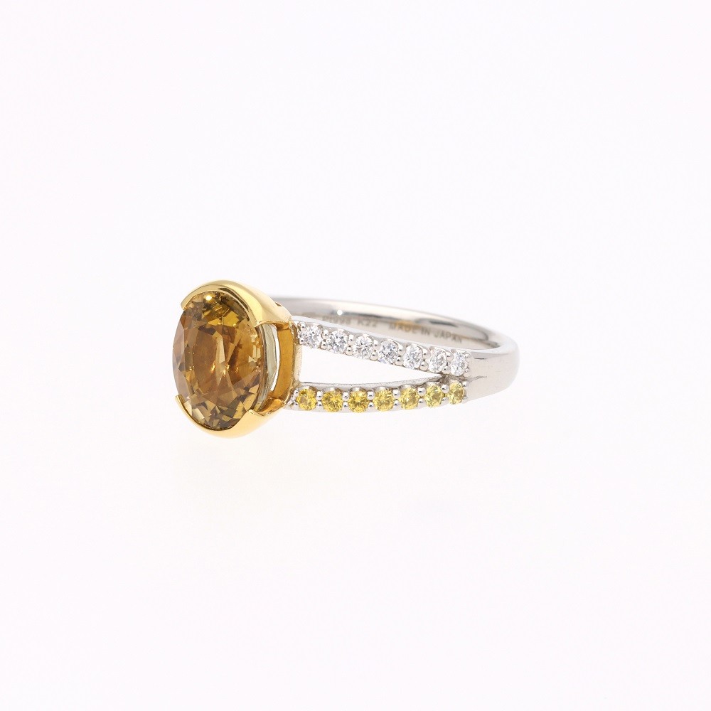 K22 PT998 イエローゾイサイト サファイア ダイヤモンド リング AQ-320(SJ-348)