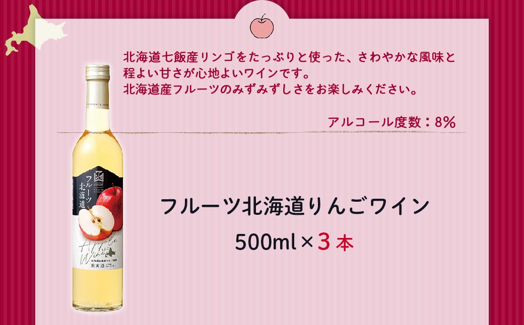 フルーツ北海道りんごワイン 500ml 3本 【 ふるさと納税 人気 おすすめ ランキング ワイン わいん フルーツワイン りんごワイン セット お酒 北海道 七飯町 送料無料 】 NAX037