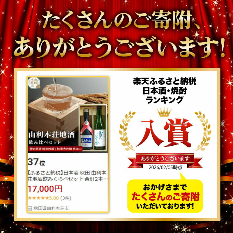 - 【ふるさと納税】日本酒 秋田 由利本荘地酒飲みくらべセット 純米吟醸 合計2本(雪の茅舎 純米吟醸 720ml、純米大吟醸 鳥海山 720ml) [日本酒 お酒 酒 純米吟醸 純米大吟醸 地酒 飲みくらべ 飲み比べ セット 秋田]