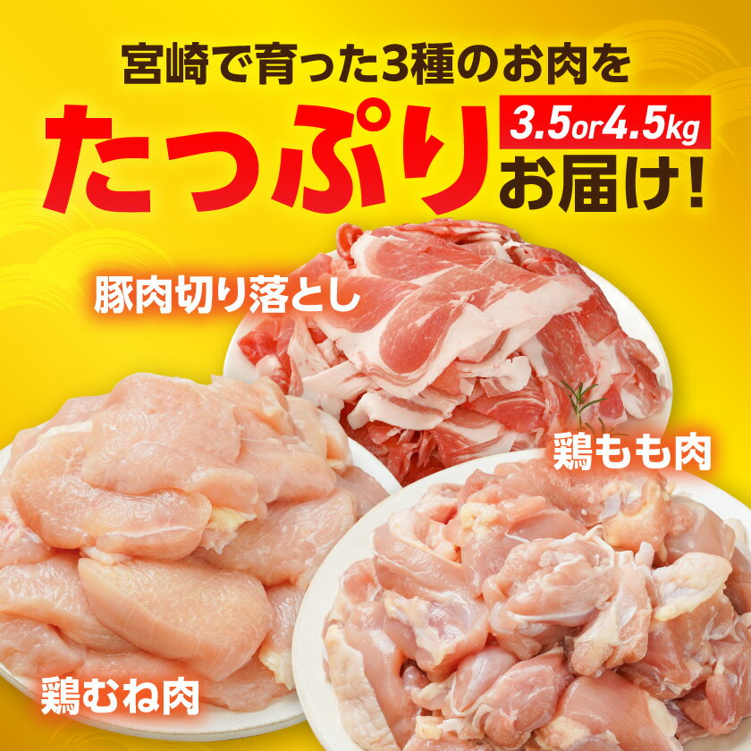 【ふるさと納税】【内容量が選べる!】宮崎県産豚肉切り落とし&鶏もも肉・むね肉(カット済) - 宮崎県産 豚肉 切り落とし 若鶏 もも切身/むね切身 真空 選べる内容量 総重量3.5kg/4.5kg 送料無料 SKU-M607 【宮崎県都城市は2年連続ふるさと納税日本一!】