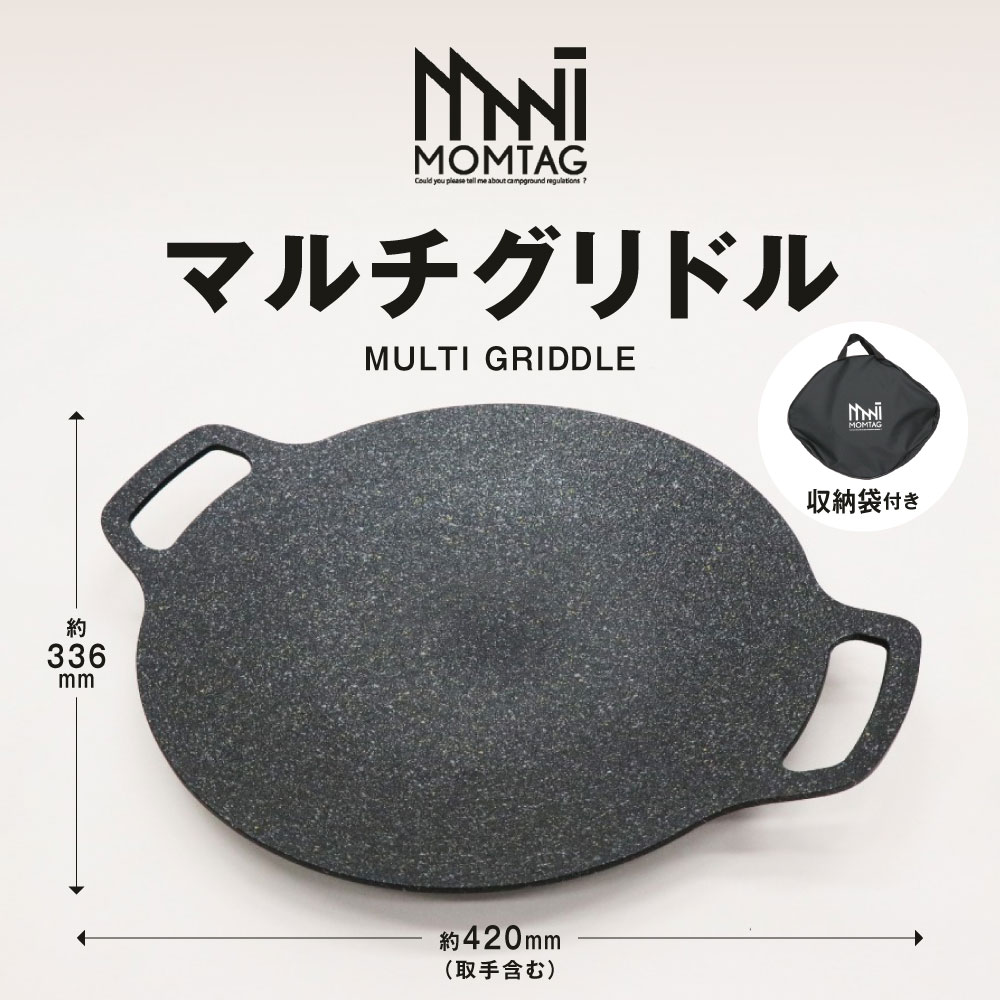 - 【ふるさと納税】【MOMTAG】マルチグリドル 1式 収納袋付き シリコンハンドルカバー 約800g アウトドア レジャー キャンプ マルチグリル フライパン 調理 直火 IH グリルパン 福岡県北九州市