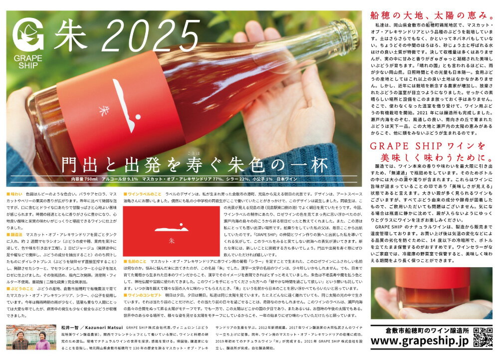 - 【ふるさと納税】ロゼワイン「朱2025」 750ml ワイン お酒 アルコール 飲料 フルーツ 果実 くだもの 果物 ぶどう ブドウ 葡萄 岡山県産 国産 岡山県 倉敷市 送料無料