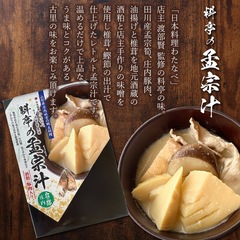 【ふるさと納税】【令和8年発送】料亭の孟宗汁(庄内豚肉入り) 400g×2箱 野菜みらい計画 | 孟宗汁 もうそうじる 筍 たけのこ 東北 山形 庄内 郷土料理 ソウルフード レトルト 簡単 温めるだけ 調理 ふるさとの味 料亭の味 期間限定 旬の味覚 お取り寄せ グルメ