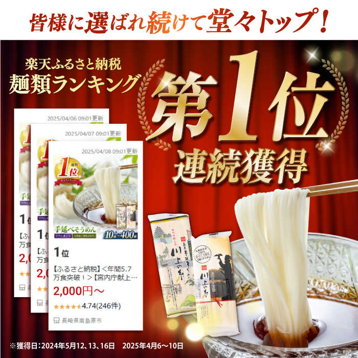 - 【ふるさと納税】【年間5.7万食突破】<宮内庁献上品>手延べそうめん2種食べ比べ / そうめん 素麺 手延べそうめん 九州産小麦粉100% 島原そうめん 麺 素麺 詰め合わせ 小分け 内容量が選べる 長期保存 災害対策 物価高応援 / 南島原市 / 川上製麺 [SCM040]