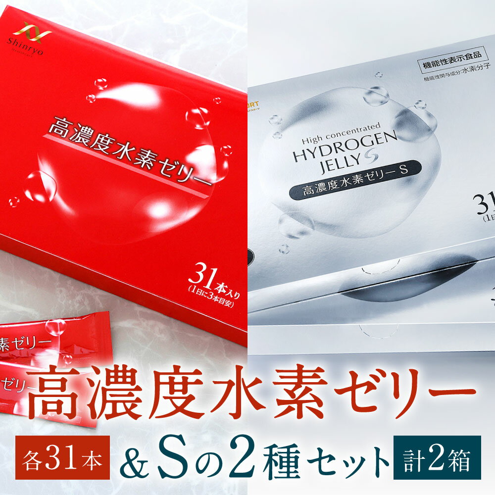 - 【ふるさと納税】高濃度水素ゼリー / 高濃度水素ゼリーS 2種類 セット 各31本入り 合計2箱(62本) 1本10g 美容 水素 ゼリー スティックタイプ コラーゲン エラスチン ローズヒップ ライチ 健康食品 特許取得 福岡県北九州市