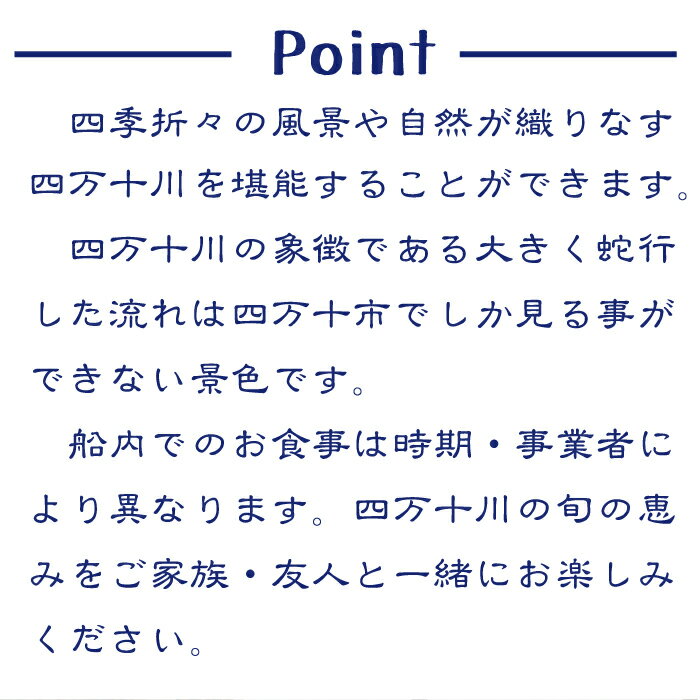 - 【ふるさと納税】26-124.四万十川観光遊覧船 ペア食事付乗船券