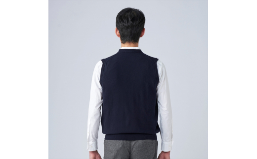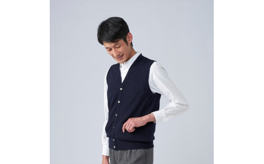 - 日本製 カシミヤ100% 前開きベスト ネイビー Mサイズ [2622]