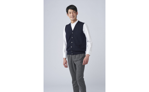 日本製 カシミヤ100% 前開きベスト ネイビー Mサイズ [2622]