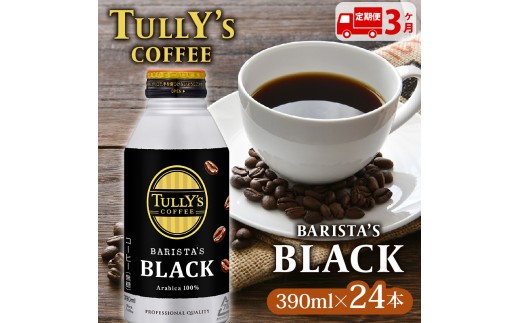 131-11000 【定期便3か月】TULLY'S COFFEE(タリーズコーヒー) BARISTA'S BLACK 390ml ×24本 缶コーヒー ブラック ブラックコーヒー バリスタ 無糖 バリスタズブラック 珈琲 キリマンジャロ エチオピア ブレンド 焙煎豆 コーヒー豆 防災 備蓄 飲料 飲み物 定番 人気 おすすめ イチオシ 送料無料 保管 ドリンク ケース カフェイン 伊藤園 静岡