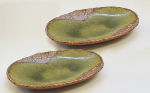 釉彩オーバル皿2枚セット 和食器 お皿 楕円皿《受注制作》
