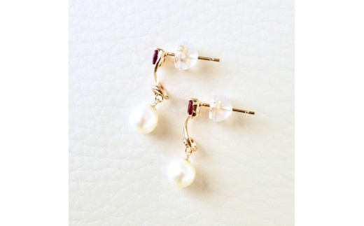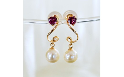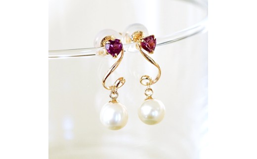K10YG(10金) イエローゴールド パール ロードライトガーネット ハート 揺れる ピアス 保証書付 2122 242-063-c