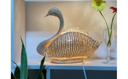 - 【ハンドメイド】Swan Light(スワンライト)<大>―籐編みの優雅な灯り―