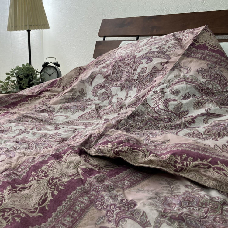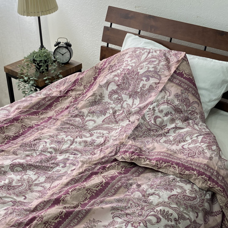 羽毛布団シングル掛け布団日本製ダウン90%1.2kg立体スクエアキルト8か所ループ付き花柄ピンク