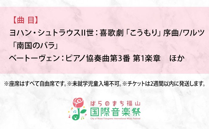 - チケット ばらのまち福山国際音楽祭2026演奏会チケット【5月22日(金) リーデンローズ大ホール オープニング・ガラ・コンサート】 広島県福山市/ばらのまち福山国際音楽祭実行委員会 音楽祭 演奏会 クラシック チケット [BAGA011]