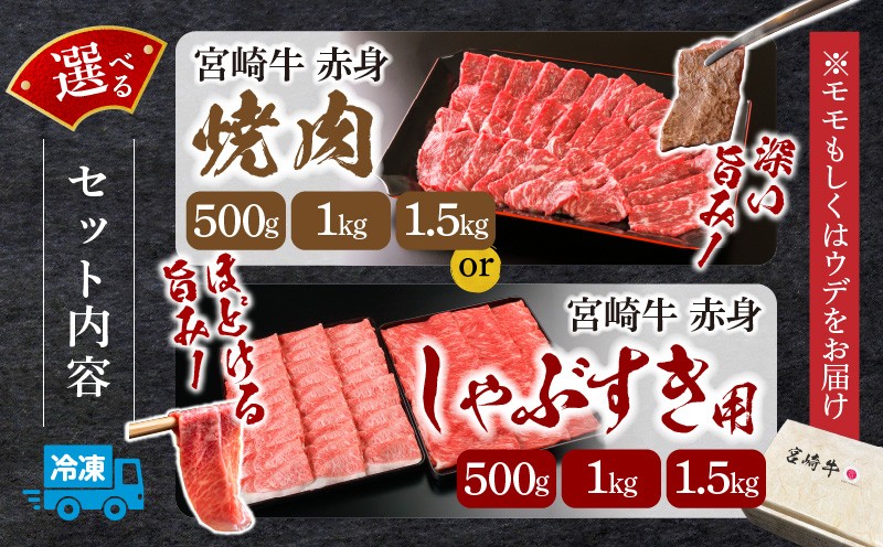 【内容量・定期便】【焼肉用orしゃぶすき用】宮崎牛 モモ or ウデ 赤身 500g 1kg 1.5kg 1パック 2パック 3パック 焼き肉 焼肉 BBQ バーベキュー キャンプ アウトドア すきやき すき焼き すきやき用 すき焼き用 しゃぶしゃぶ しゃぶしゃぶ用 小分け 便利 プレゼント 人気 おすすめ 宮崎県 宮崎市 宮崎_M299-003-SKU