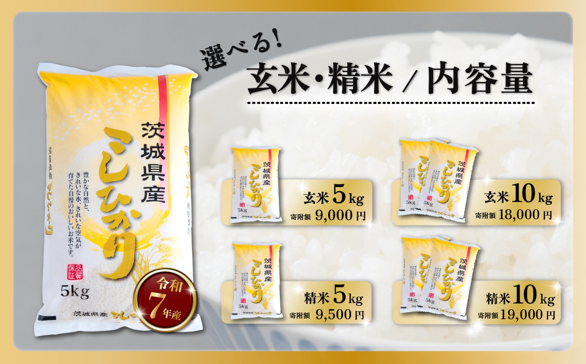 - 【最短7日発送】〔選べる容量・玄米/精米・発送月〕コシヒカリ 5kg 10kg 茨城県下妻市産 【 お米 米 白米 玄米 ご飯 こめ コシヒカリ 令和7年産 茨城県産 】