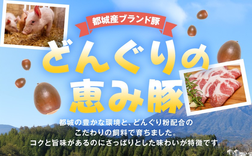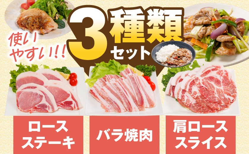 「どんぐりの恵み豚」3種バラエティ1.2kg(真空パック)_13-11-001_(都城市) 都城産 都城産ブランド豚 どんぐりの恵み豚 どんぐり粉 ステーキ スライス 焼肉 豚肉