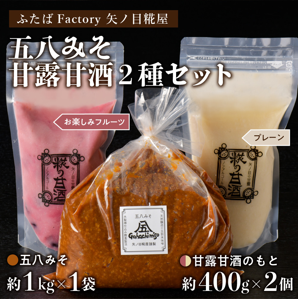 天然醸造十五割米みそ「五八みそ」、甘露甘酒のもと(プレーン)&(お楽しみフルーツ)セット