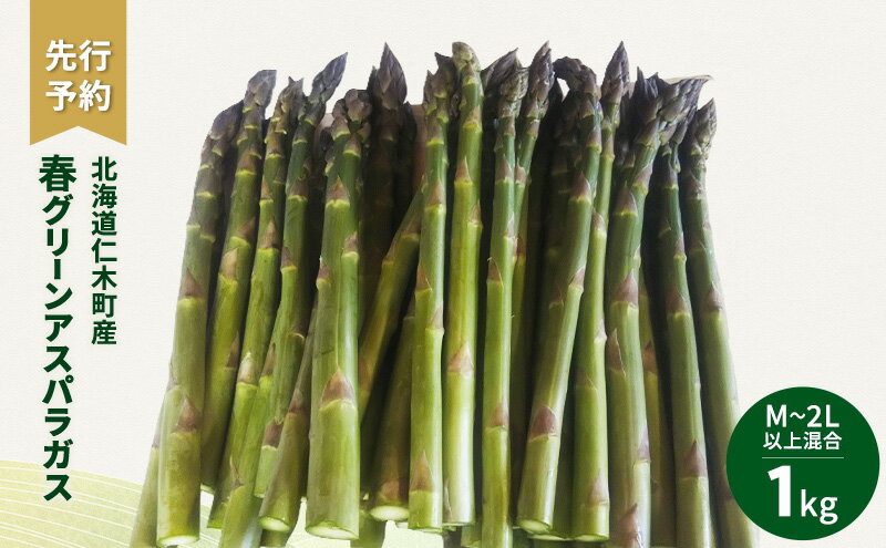 【ふるさと納税】先行受付 北海道 仁木町産 春グリーンアスパラ M~2L以上混合 1kg アスパラ 野菜 新鮮 食材 春野菜 旬の野菜 北海道産 北海道野菜 国産 日本産 [古屋農園] お届け:2026年4月下旬~5月下旬まで