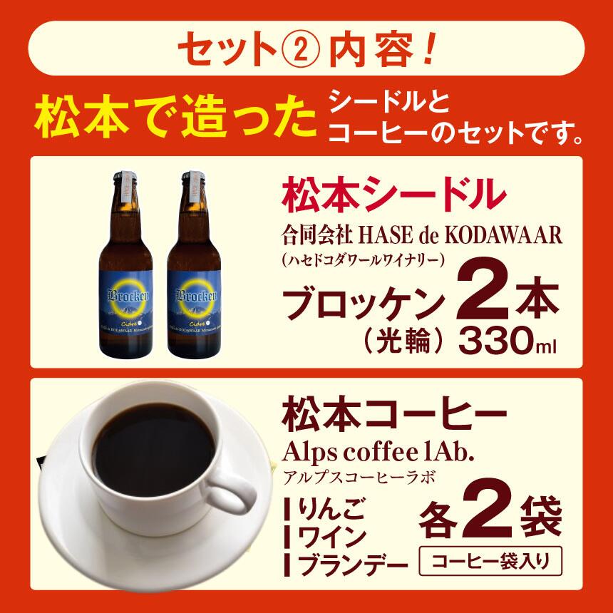 - 【ふるさと納税】松本シードル(ブロッケン)と松本コーヒーのセット |ふるさと納税 果実酒 お酒 酒 飲料 ドリンク アップル ワイン シードル ハードサイダー 辛口 詰め合わせ 飲み比べ 長野県 松本市 りんご コーヒー ドリップコーヒー ドリップ 中挽き