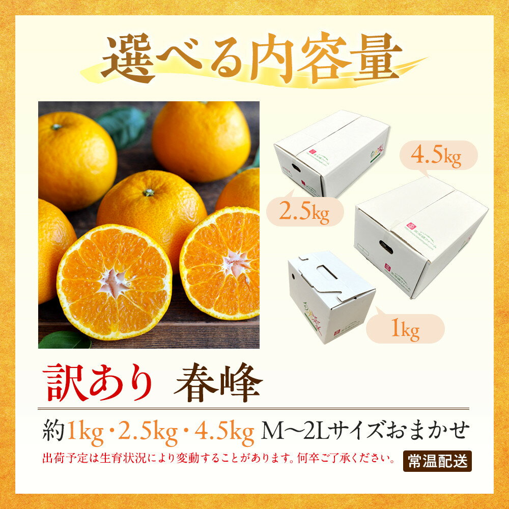 - 【ふるさと納税】【選べる容量】訳あり 春峰 1~4.5kg M~2Lサイズおまかせ 高石垣ファーム | みかん 蜜柑 フルーツ 果物 くだもの 食品 人気 おすすめ 送料無料
