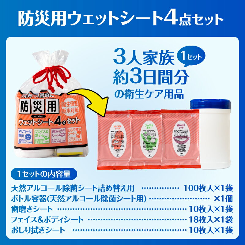 - 【ふるさと納税】 ウェットシート 防災用 4点セット 選べるセット数 2セット/6セット/12セット 外出 アウトドア 運動後 緊急時 手軽 便利 衛生 防災 断水 備蓄 常備 富士市 [sf002-575-577]