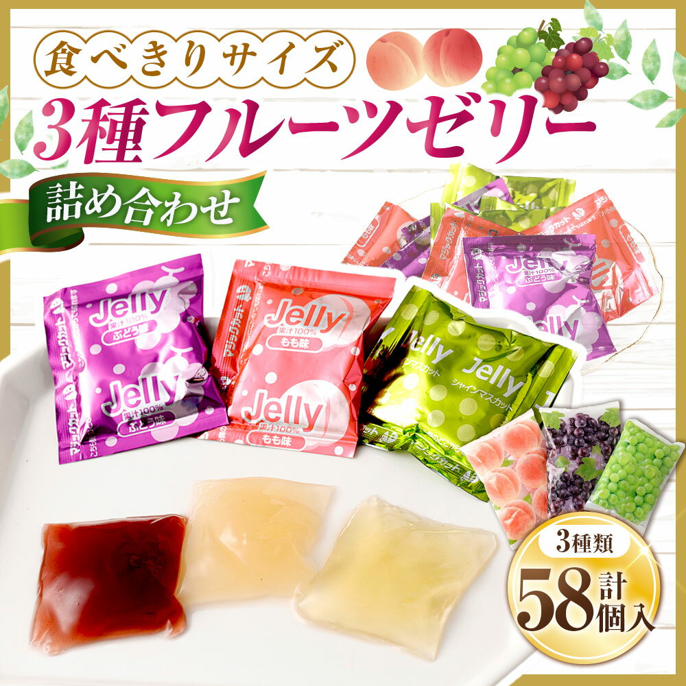 - 【ふるさと納税】3種フルーツゼリー詰め合わせ ぶどう味(20個)・もも味(18個)・シャインマスカット味(20個) ブドウ 葡萄 モモ 桃 マスカット フルーツ くだもの 果物 果汁 おやつ デザート スイーツ お菓子 パウチタイプ シャーベット セット 山梨県 中央市 送料無料