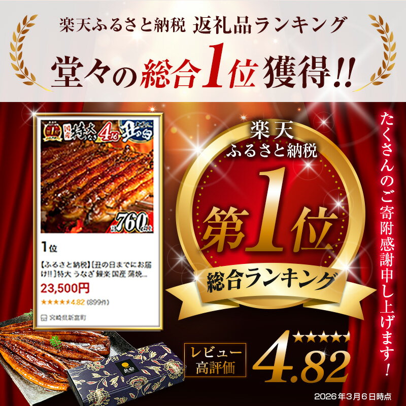 - 新富町産うなぎ蒲焼4尾 合計760g以上
