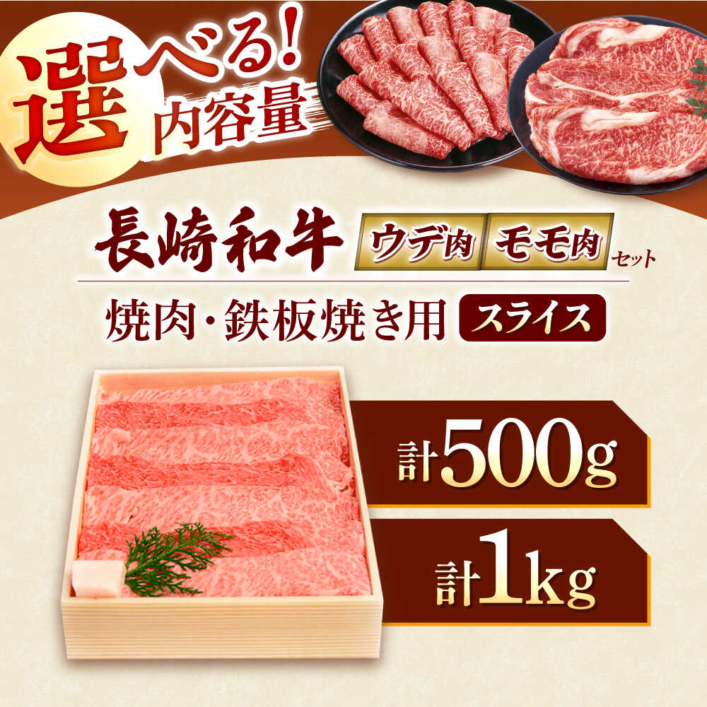 - 【ふるさと納税】【選べる容量】長崎和牛 ウデ・モモ スライス肉 500g〜1kg 焼肉用 鉄板焼用 【川下精肉店】[OAA002] / 黒毛和牛 冷凍配送 もも肉 うで肉 焼肉 牛肉 冷凍 すきやき用 モモ ウデ しゃぶしゃぶ用 国産和牛 国産牛 お取り寄せ 贈答用 A4ランク以上