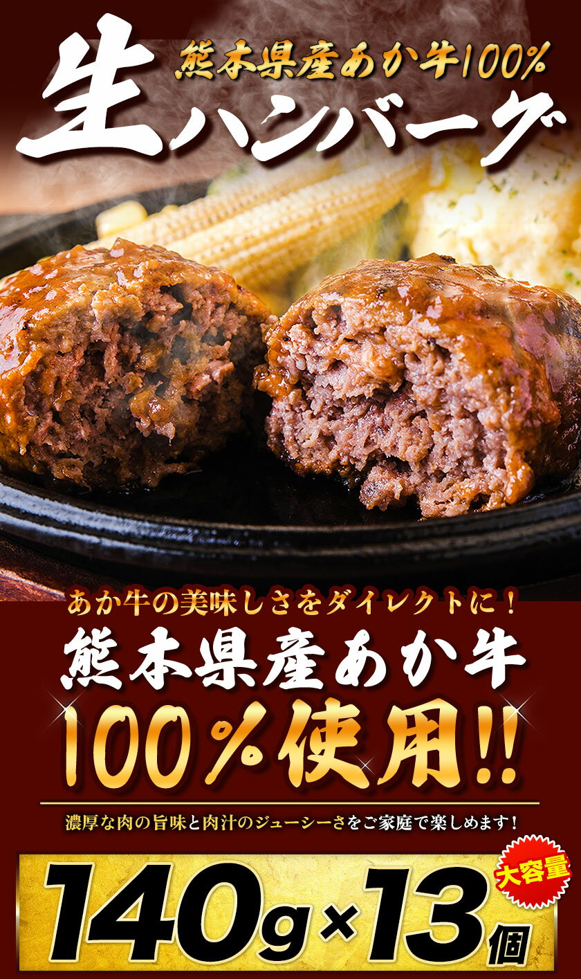 - 【ふるさと納税】ハンバーグ 熊本県産あか牛100%生ハンバーグ 140g×13個 26個 39個 【1820g 3620g 5460g】《30日以内に出荷予定(土日祝除く)》熊本県産 あか牛 冷凍