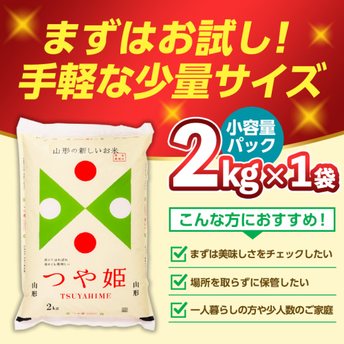 令和7年産 山形産 特別栽培米 つや姫(白米) 2kg お試し少量サイス FY25-525