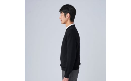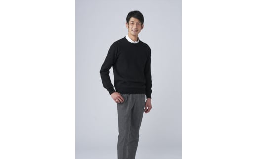 日本製 カシミヤ100% クルーネック ブラック Mサイズ [2646]
