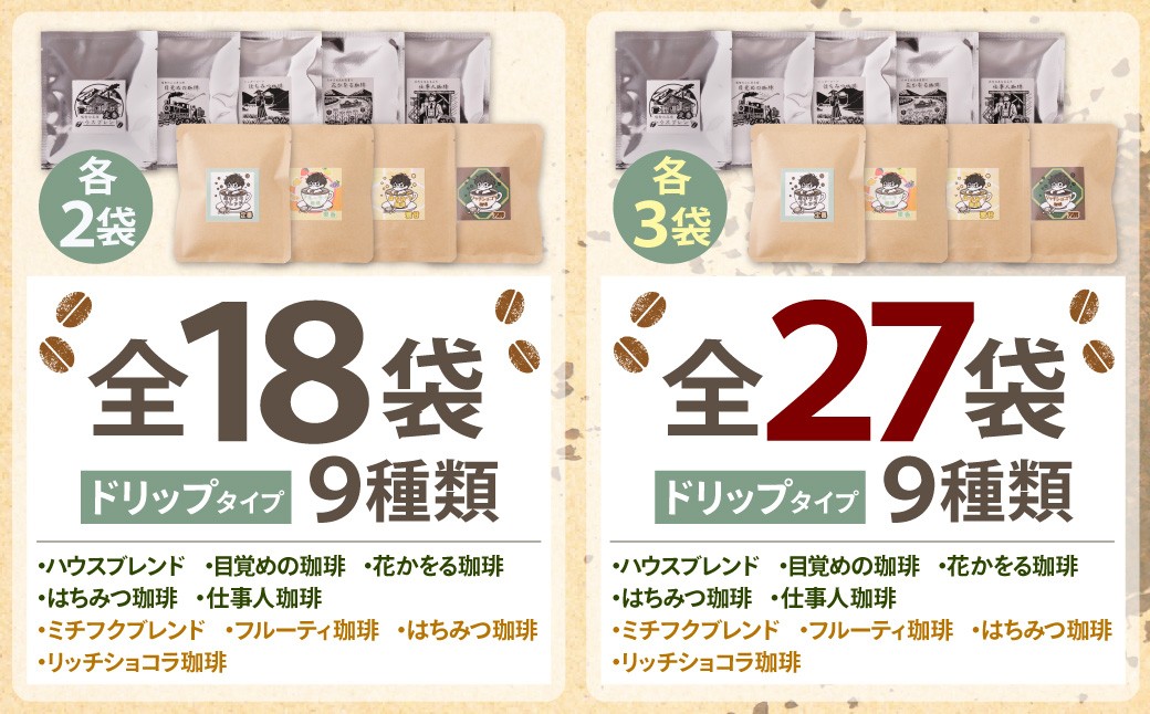 - ミチフク珈琲・福智山麓キセキの珈琲 ドリップバッグバラエティーセット18~27袋 ★レビューキャンペーン開催★ W70
