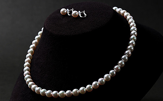花珠 あこや真珠 ネックレス イヤリング 8.0-8.5mm 鑑定書付 パール セット ジュエリー アクセサリー