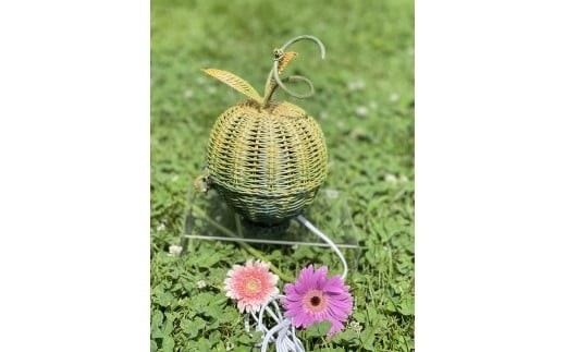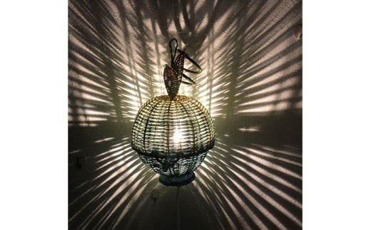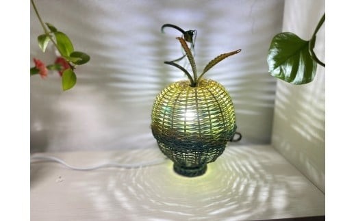 - 【ハンドメイド】籐の灯り 青りんごランプ
