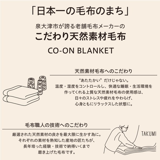 - 【シングルサイズ】CO-ON オールオーガニックコットン毛布 140×200cm 1枚 CO-OR-S