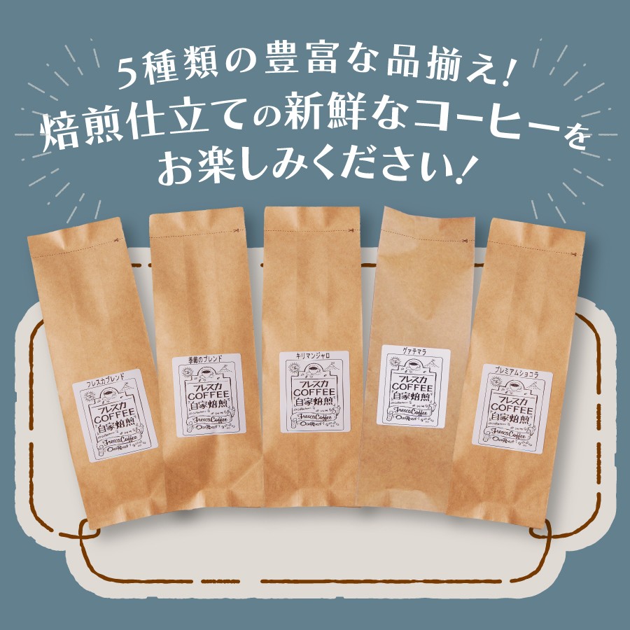 - 厳選コーヒー フレスカ詰め合わせセット 【選べる 豆・粉 】 コーヒー 飲み比べ 5種 セット 自家焙煎 珈琲 フレスカ 山梨 富士吉田