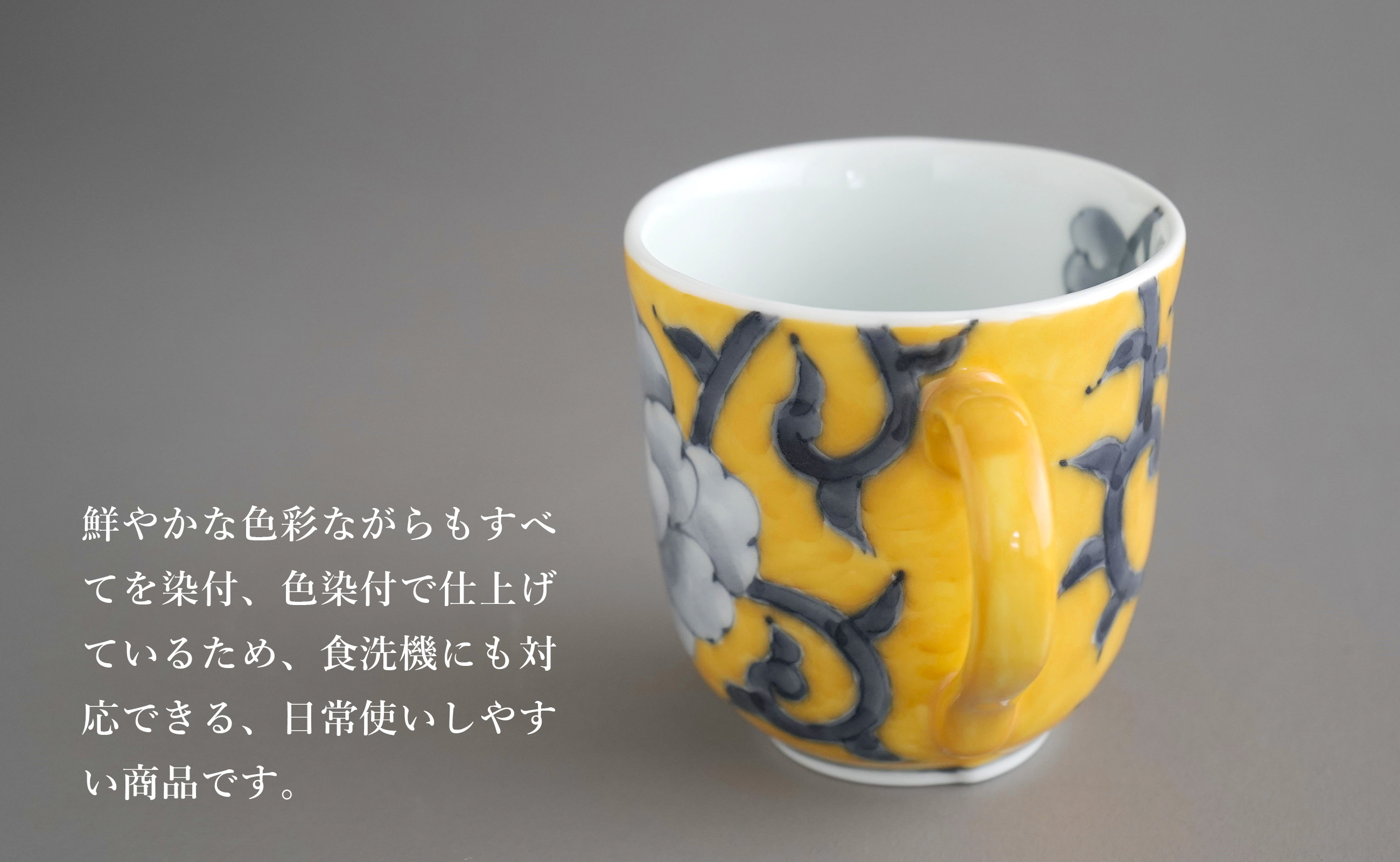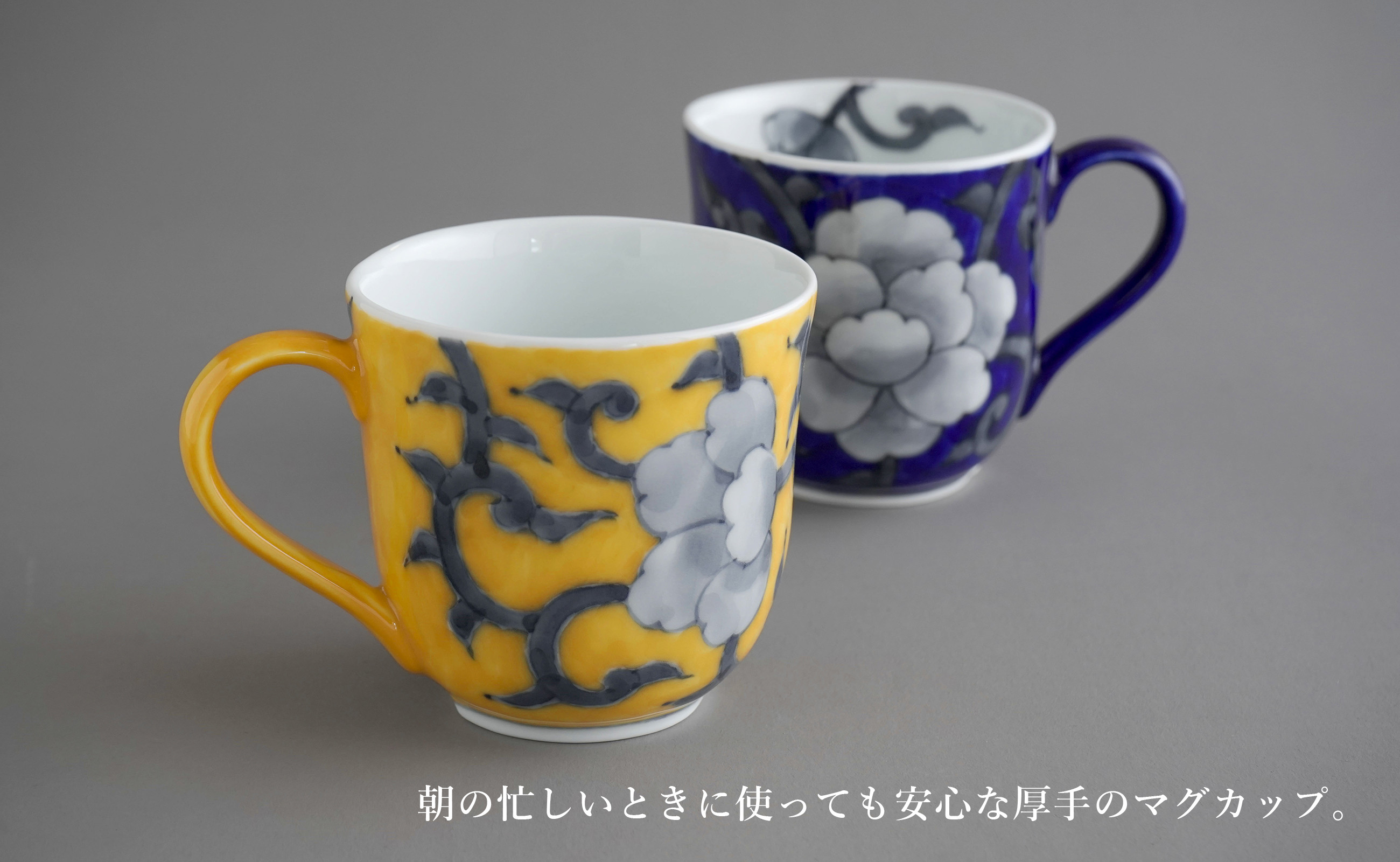 - 有田焼 食洗機対応 牡丹唐草マグカップ 呉須・黄 ペアセット【泰山】食器 器 うつわ コーヒーカップ A70-189