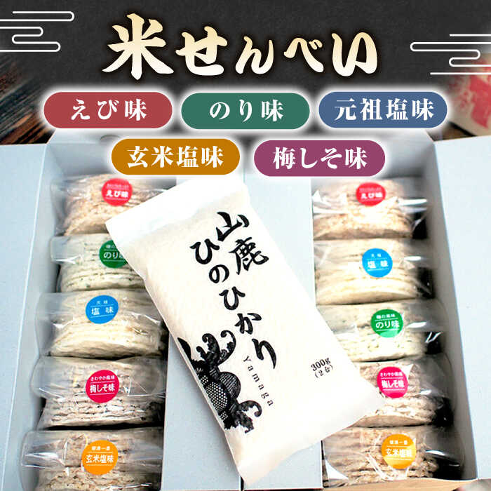 - 【ふるさと納税】【3回定期便】【こだわり抜いた厳選素材】米せんべい(えび味、のり味、元祖塩味、玄米塩味、梅しそ味) & ヒノヒカリ のセット 【せんべい工房】[ZBQ003]