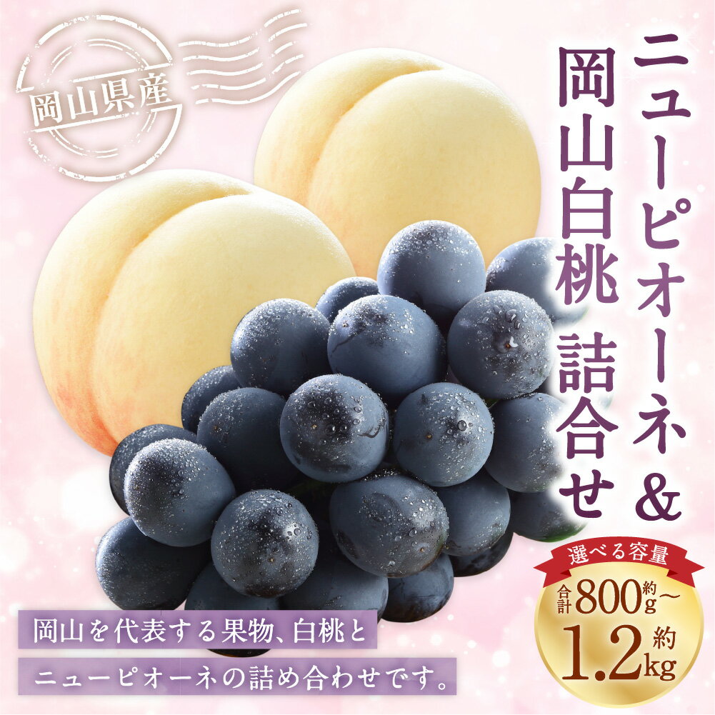 - 【ふるさと納税】<選べる品種・内容量>岡山県産 岡山白桃(ロイヤル / エース)・ニューピオーネ 詰合せ 計約800g~計約1.8kg 桃 もも モモ ぶどう ブドウ 葡萄 フルーツ くだもの 果物 果実 デザート セット 冷蔵 国産 送料無料 【2026年7月上旬~8月下旬発送予定】