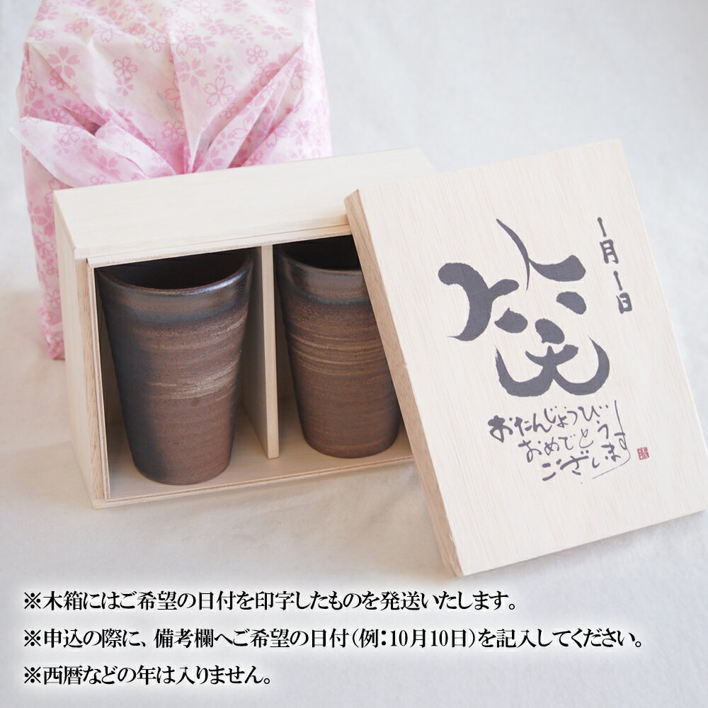 【ふるさと納税】【萬古焼】ペアカップセット お誕生日セット (デザイン書道家がデザインした木箱と四日市萬古焼ペアカップ)