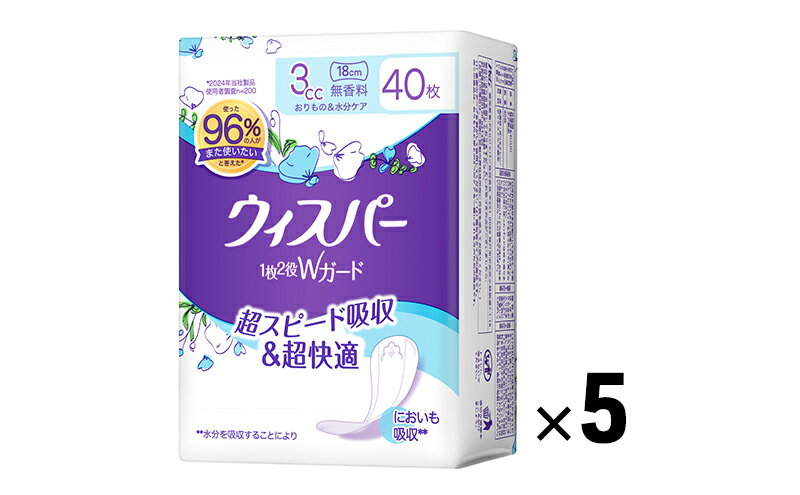 - 【ふるさと納税】ウィスパー 1枚2役Wガード 女性用 軽度尿ケア製品 無香料 3cc 18cm 40枚 5パック パンティーライナー P&G 日用品 女性 用品 消耗品 おりものシート 吸水シート 尿漏れパッド 尿漏れ 尿ケア 吸水ナプキン スリム 吸水 消臭 兵庫 兵庫県 明石 明石市