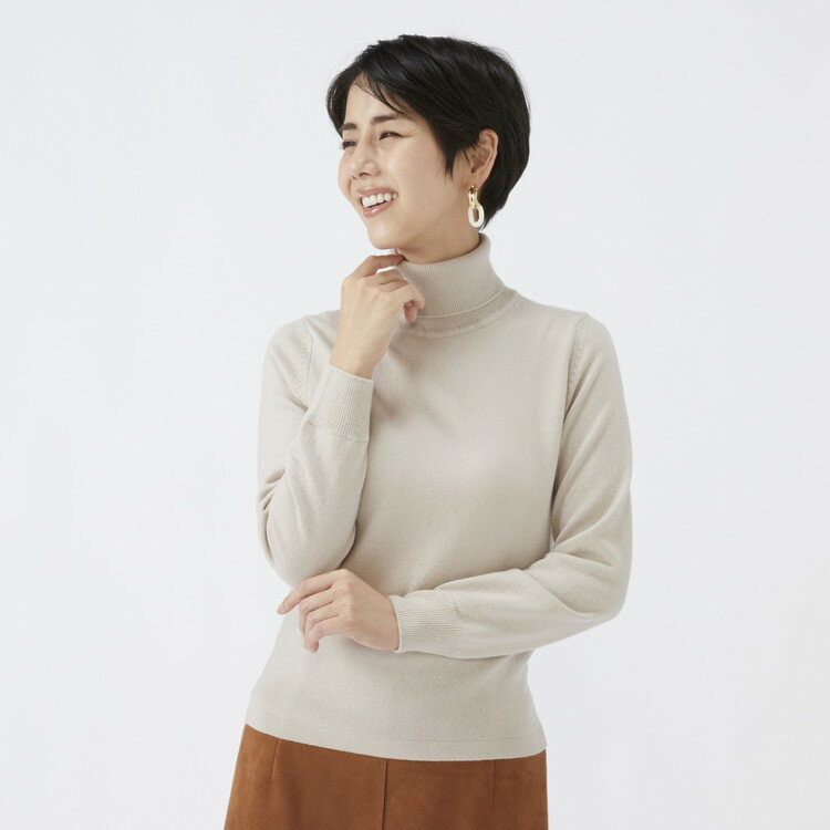 - 【ふるさと納税】【選べるサイズ】日本製 カシミヤ100% レディース タートルネック ライトベージュ