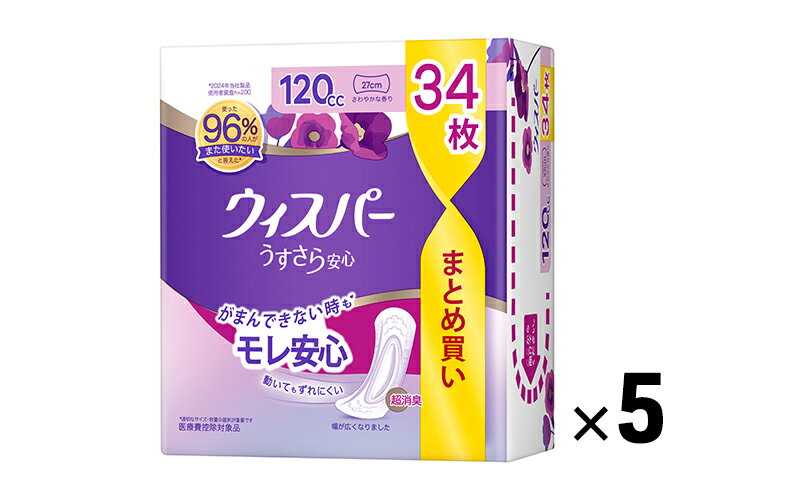 【ふるさと納税】ウィスパー うすさら安心 女性用 軽度尿ケア製品 さわやかな香り 120cc 27cm 34枚 5パック パンティーライナー P&G 日用品 女性 用品 消耗品 吸水シート 尿漏れパッド 尿漏れ 尿ケア 吸水ケア 吸水ナプキン スリム 吸水 消臭 兵庫 兵庫県 明石 明石市