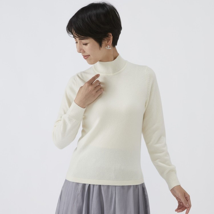 - 日本製 カシミヤ100% レディース ハイネックセーター オフホワイト S~Lサイズ