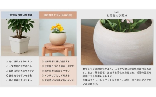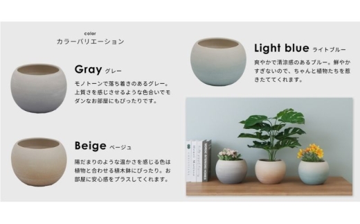 - 植木鉢 Gonfler(ゴンフレ) グレー セラミック 約 6号 フラワーポット プランター 鉢 丸い鉢 丸い 丸型 中型 観葉植物 おしゃれ くすみカラー ガーデニング用品 ガーデニング 園芸 インテリア 兵庫 兵庫県 小野市