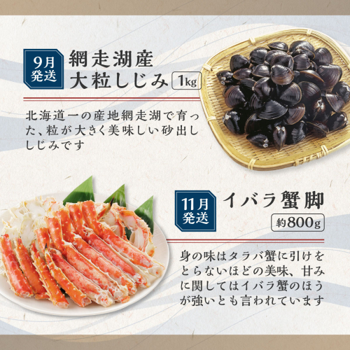 - 【定期便】オホーツク海鮮グルメ定期便 6回 ホタテ 貝柱 タラバガニ ズワイガニ ポーション 脚 いくら しじみ 鮭 切り身 北海道 網走 ※着日指定不可 ※離島への配送不可 ABAO068