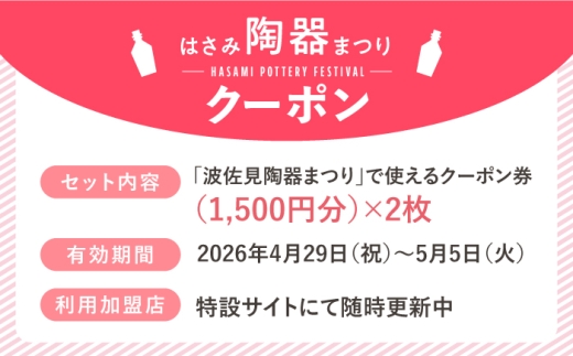 - 【波佐見 陶器市】2026年 波佐見陶器まつりで使えるクーポン 3,000円分【長崎県波佐見町】 [FB62] 陶器まつり 陶器市 クーポン