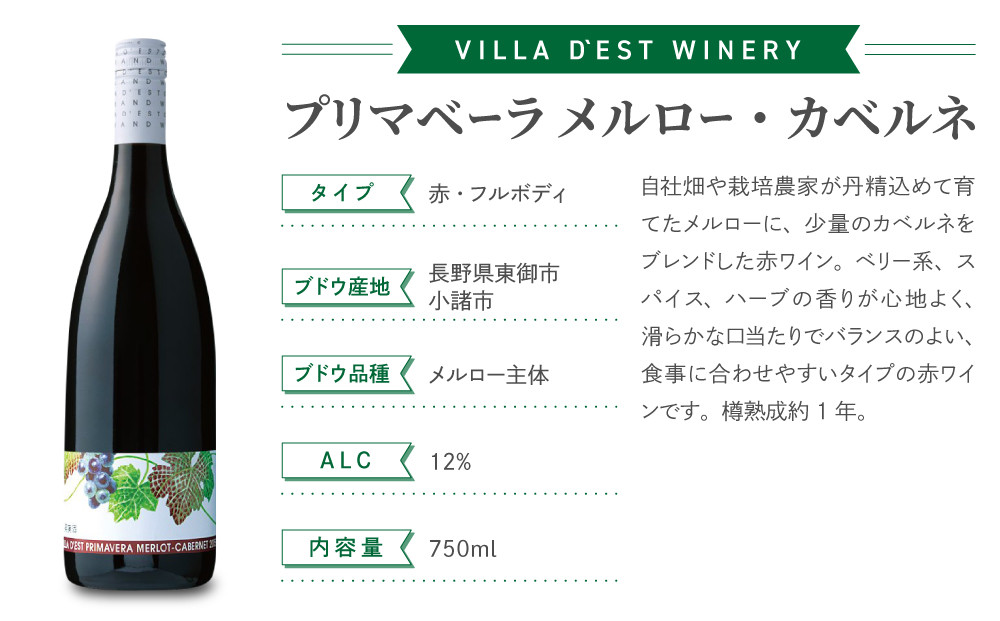国産ワインコンクール銀賞!赤白ワイン 4本セット(プリマベーラ メルロー・カベルネ & プリマベーラ シャルドネ)|【ヴィラデスト ワイナリー】GI長野 長野ワイン 日本ワイン ワイン 赤ワイン 白ワイン 辛口 フルボディ 長野 東御